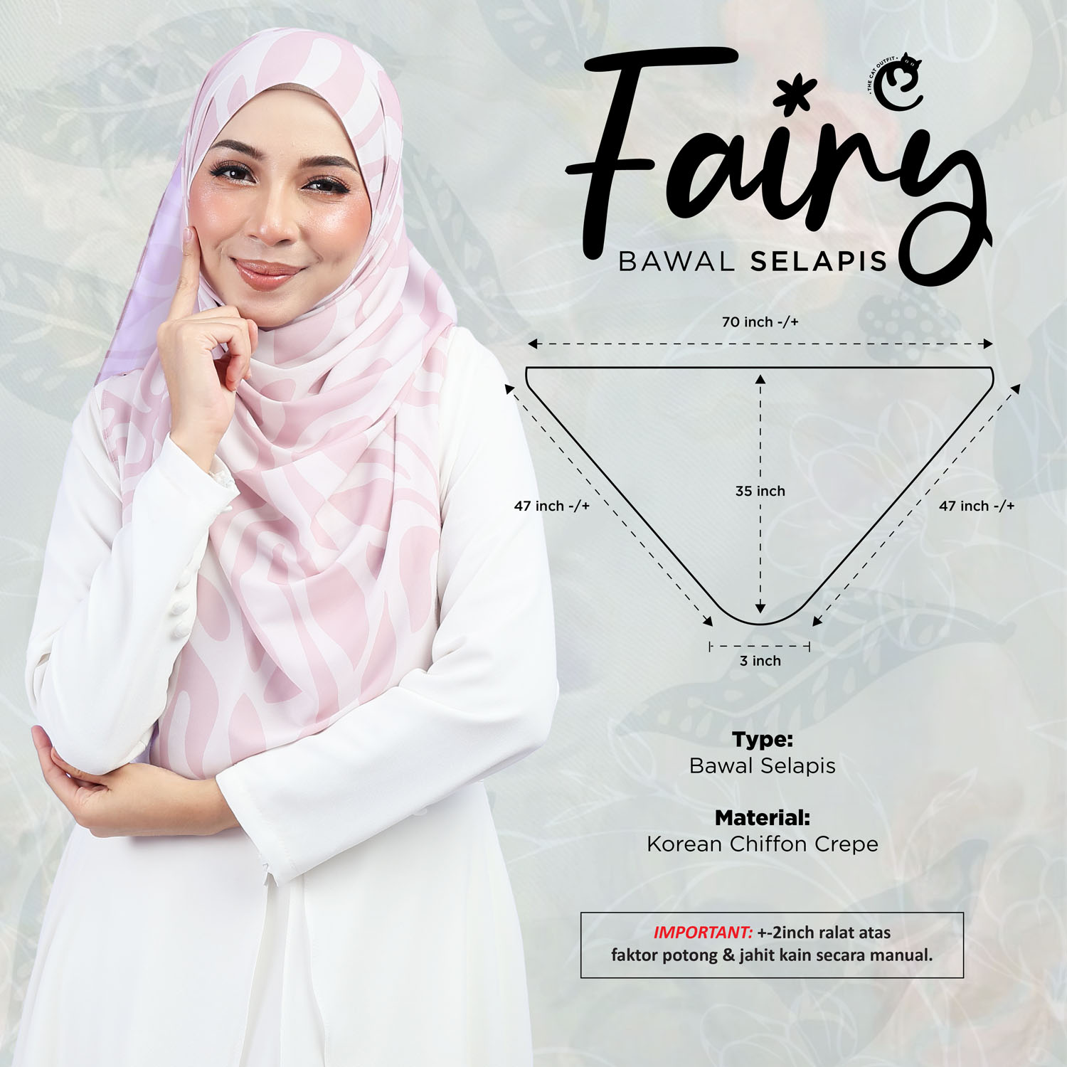 - Kain Organic Chiffon: Memberikan rasa lembut dan selesa.