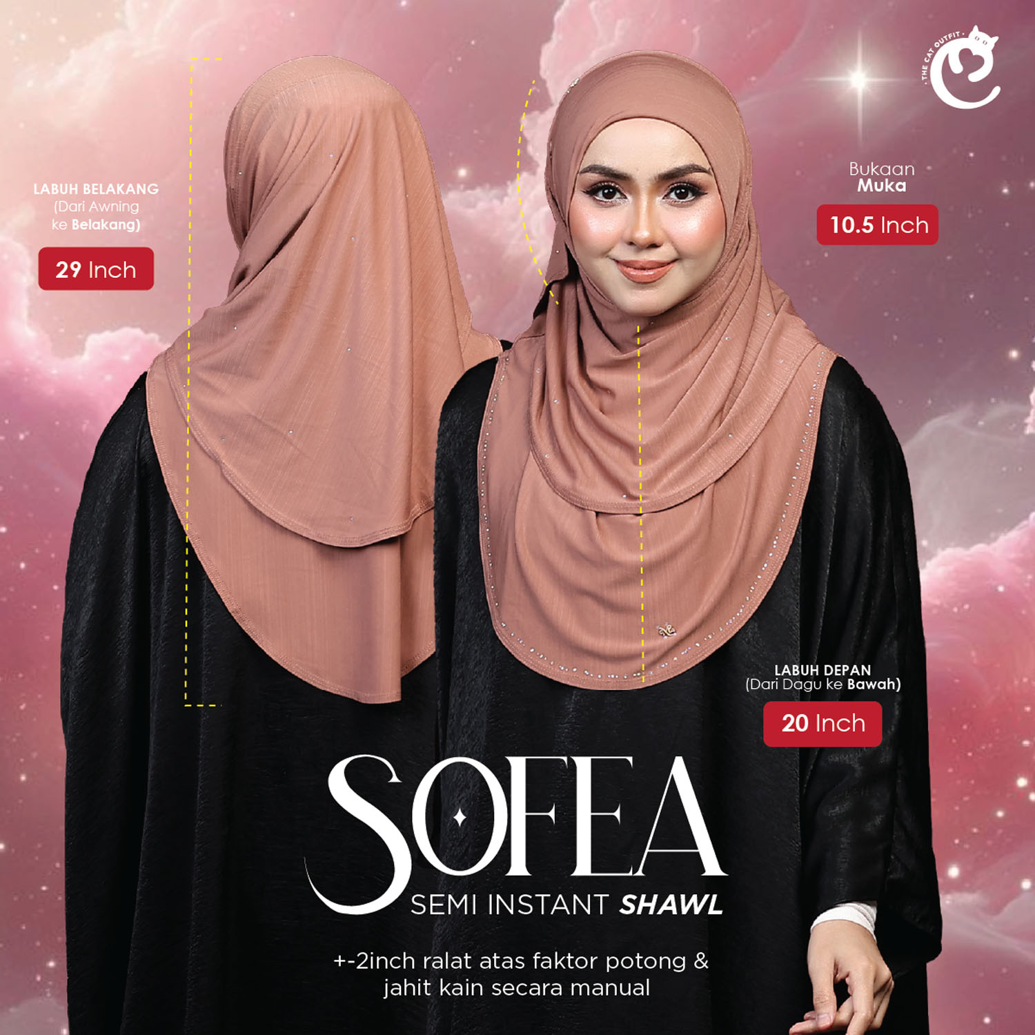 MEASUREMENT : (+-2inch) atas faktor potong & jahit kain