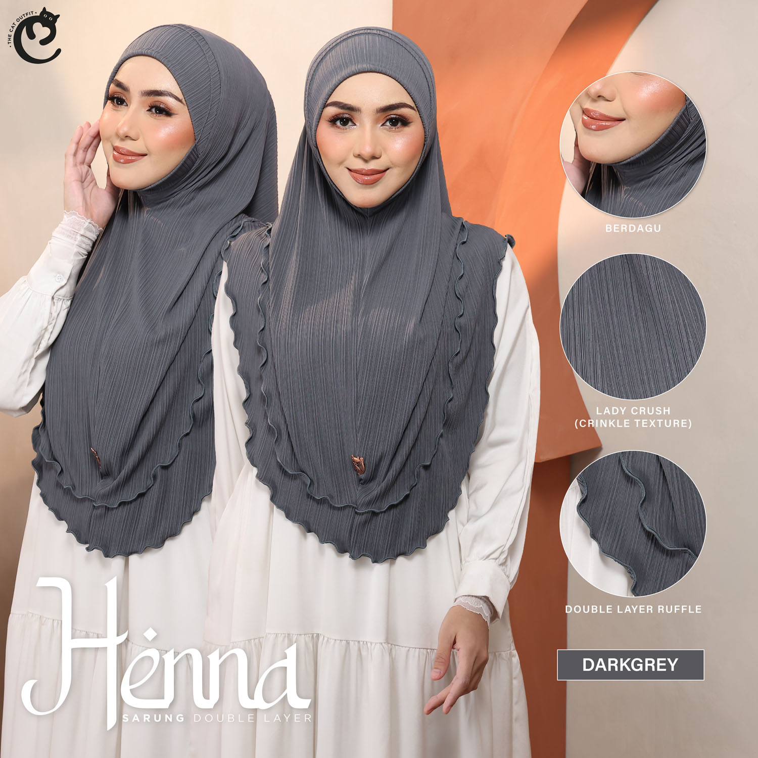 ✨ Tudung Sarung Henna 2 Layer Ruffle dengan bahan crinkle textured lady crush premium. Bidang 45″ hijab ini menawarkan kualiti jahitan instan yang tinggi dan bahan berkualiti. 🌟