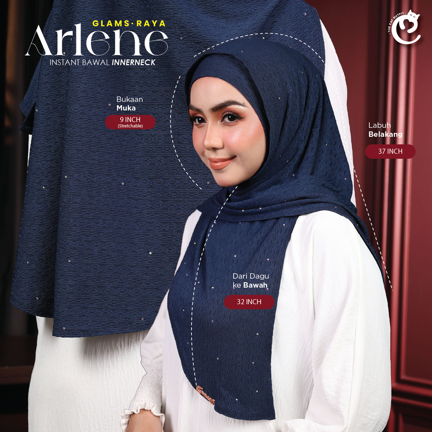 MEASUREMENTÂ : (+-2inch) atas faktor potong & jahit kain
